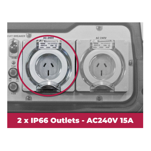 - 2 x IP66 Outlets (single phase - 15 Amp)