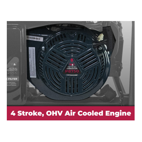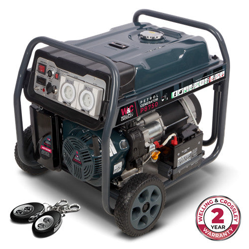 The Welling and Crossley P8750 is an AVR (automatic voltage regulated) generator with E-start. Supplied with transport kit (handles and wheels), this generator is Euro 5 emissions compliant. The generously sized fuel tank and economical motor allows longer run times. The WC-P8750 packs a lot of power in a compact footprint.